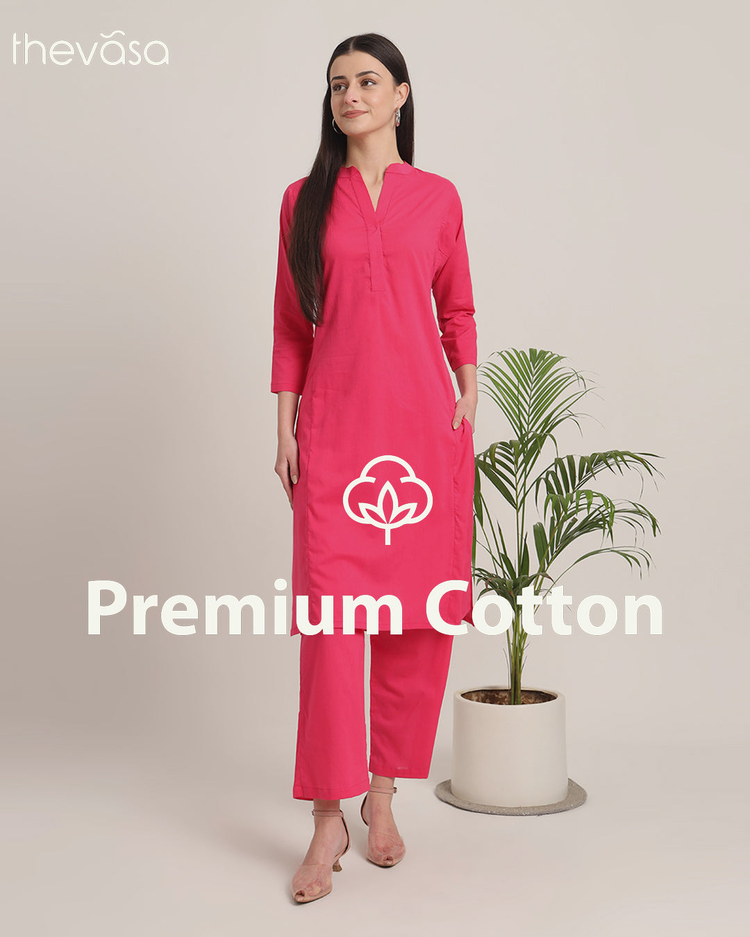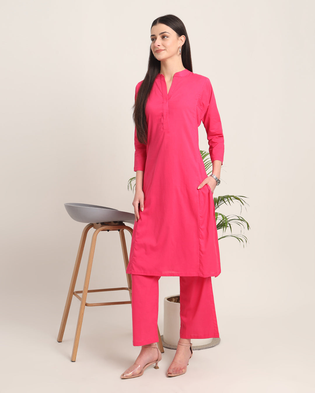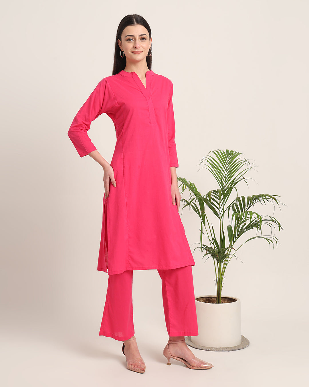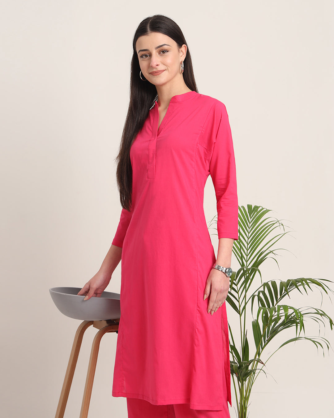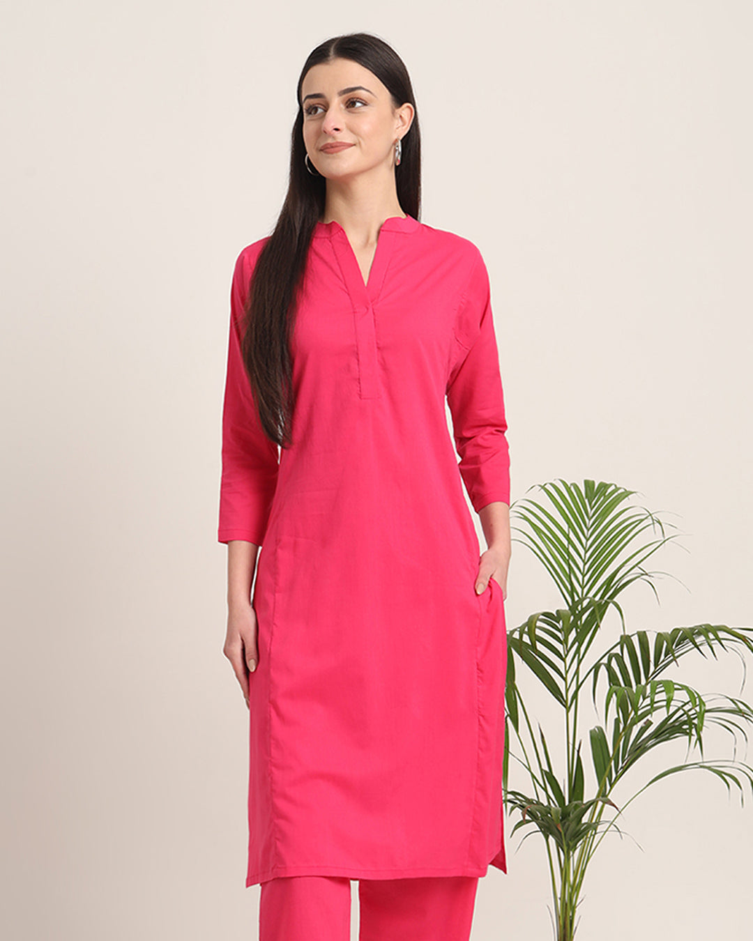 Queen's Gulabi Everyday Bliss Notch Neck Solid Kurta (Without Bottoms)