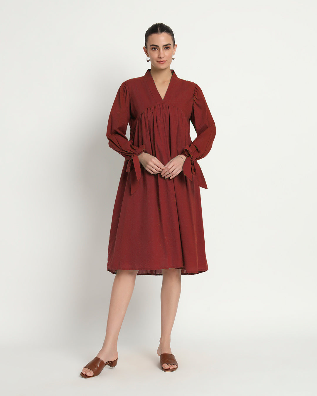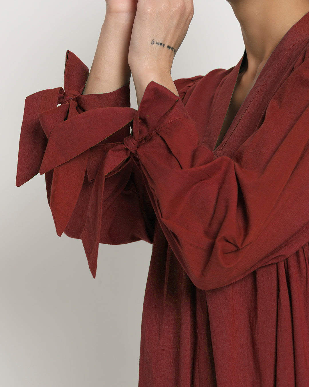 Unveiling a new realm of style: our solid gathered dresses adorned with captivating tie-up bows on the sleeves. Redefine elegance, stand out from the crowd, and make