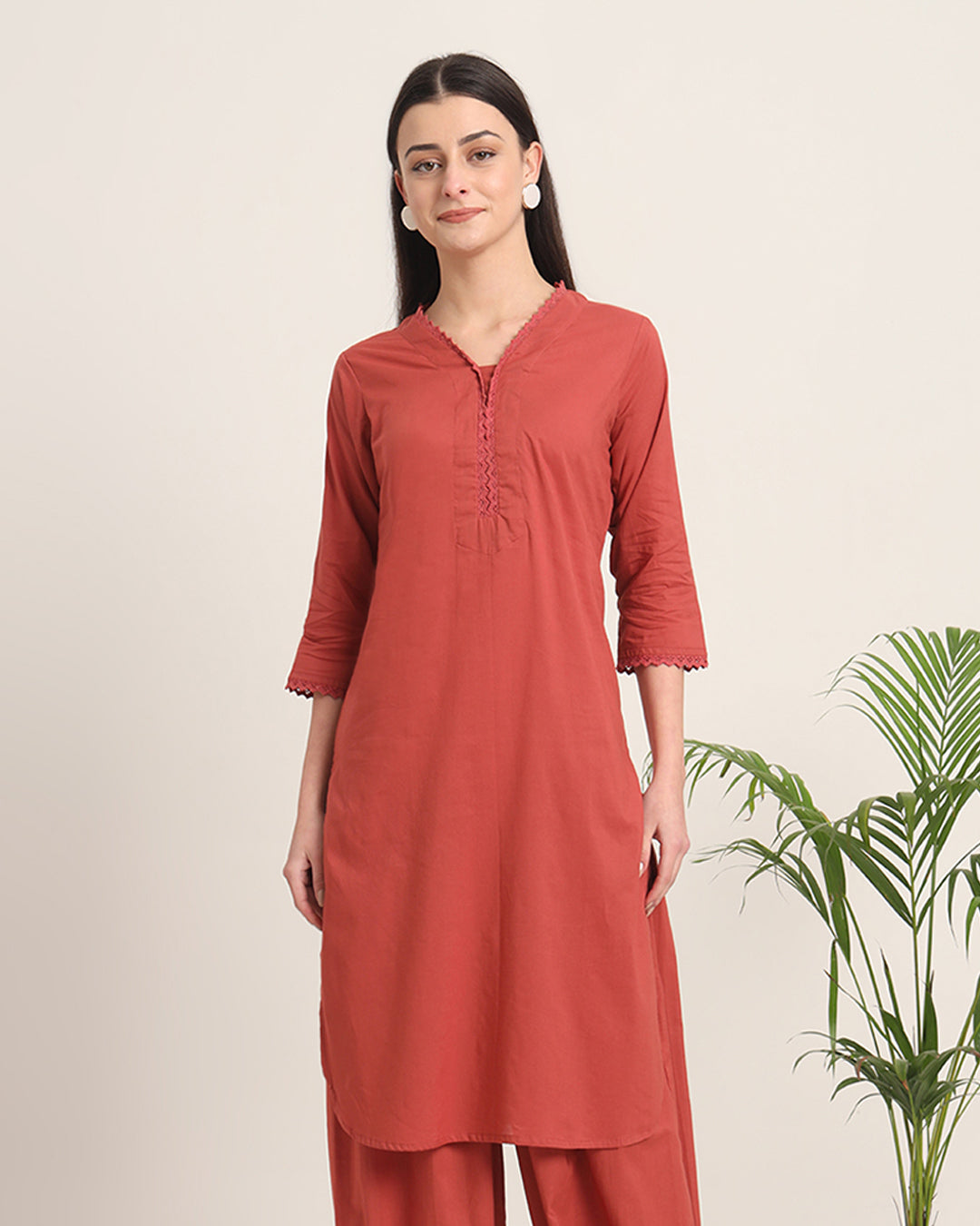 Russet Red Lace Affair Solid Kurta (Without Bottoms)
