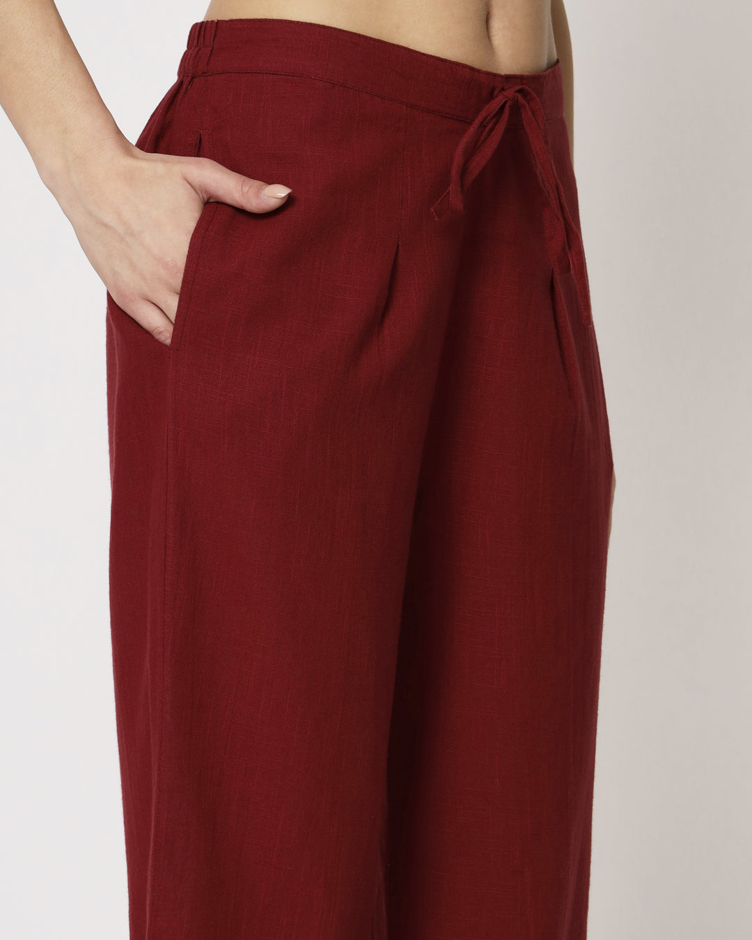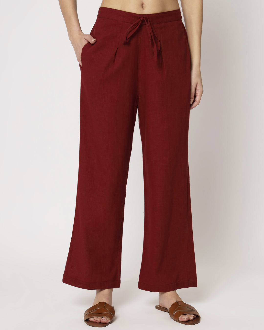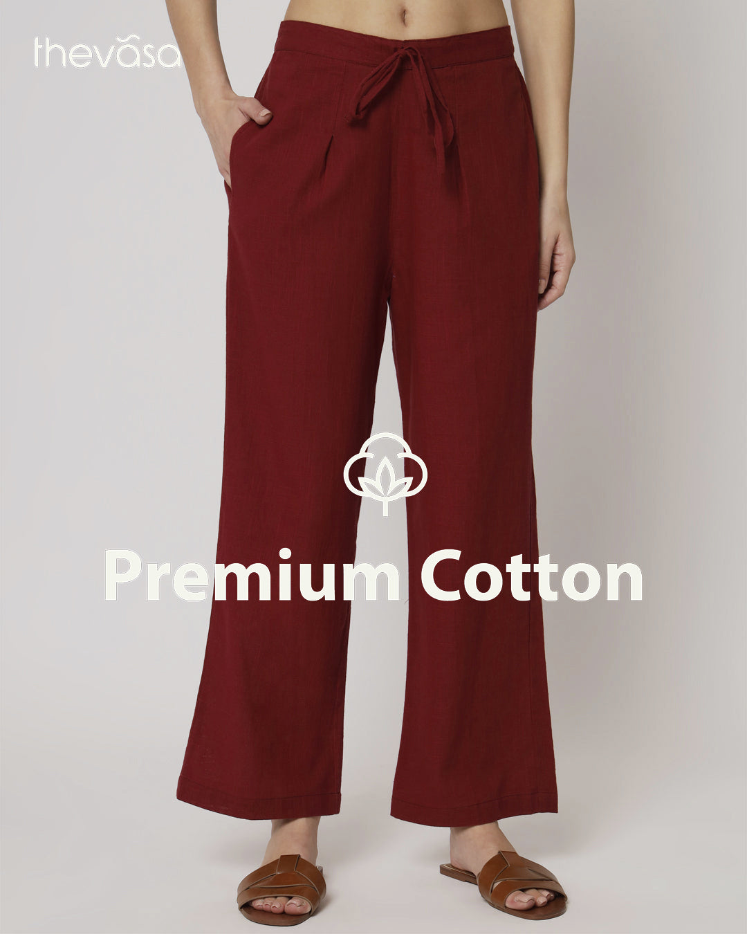 Upgrade your wardrobe with this classic presentation from Thevasa-Crafted from high grade cotton and available in a host of shades. The class and charm to these straight pants can go from Board meetings to house parties in minutes.