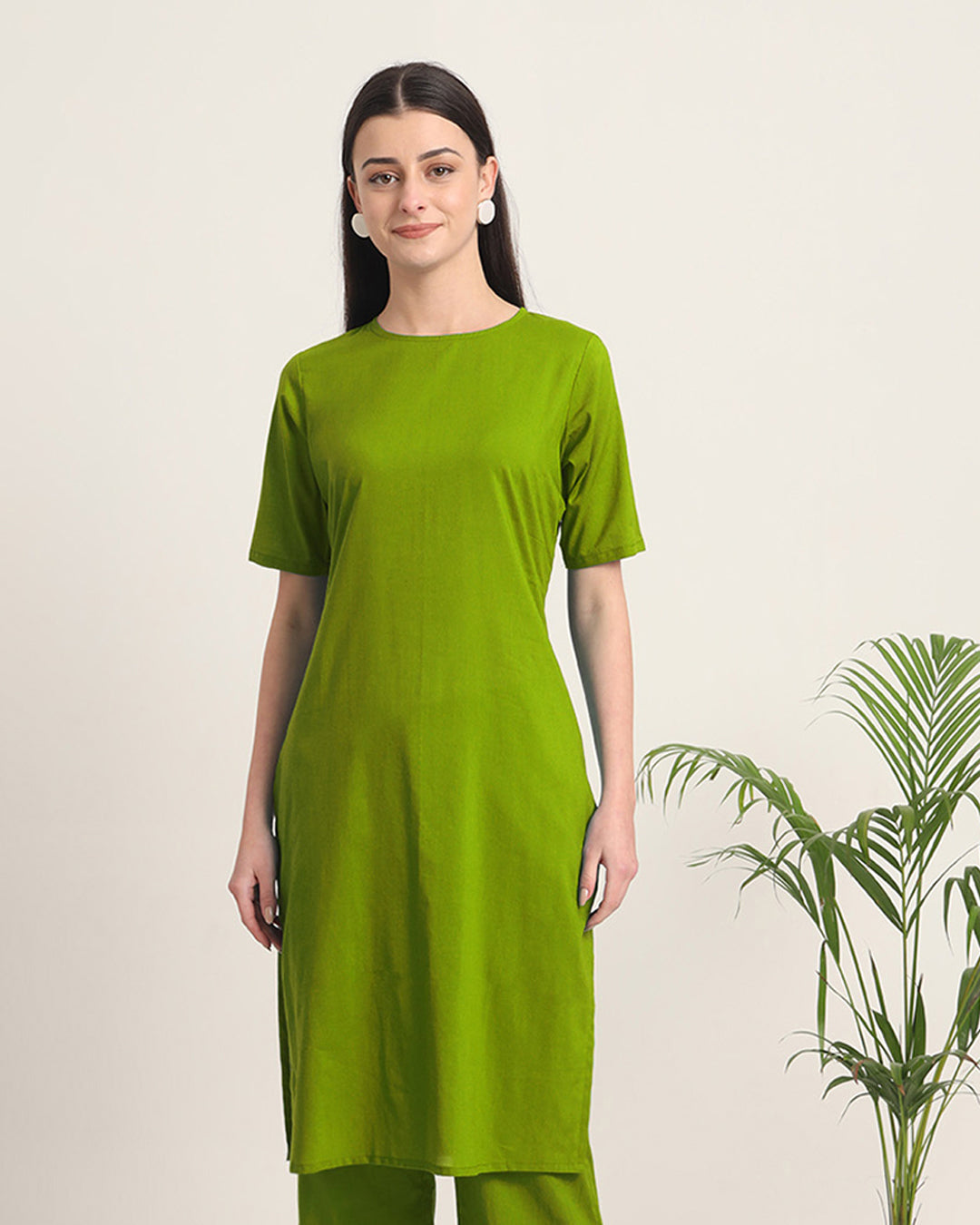 Sage Green Round Neck Long Solid Kurta (Without Bottoms)
