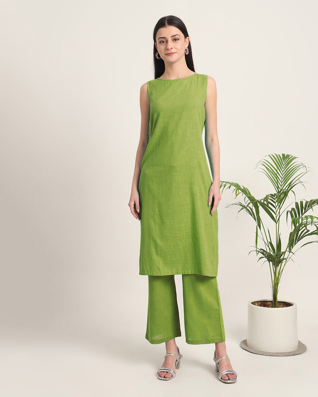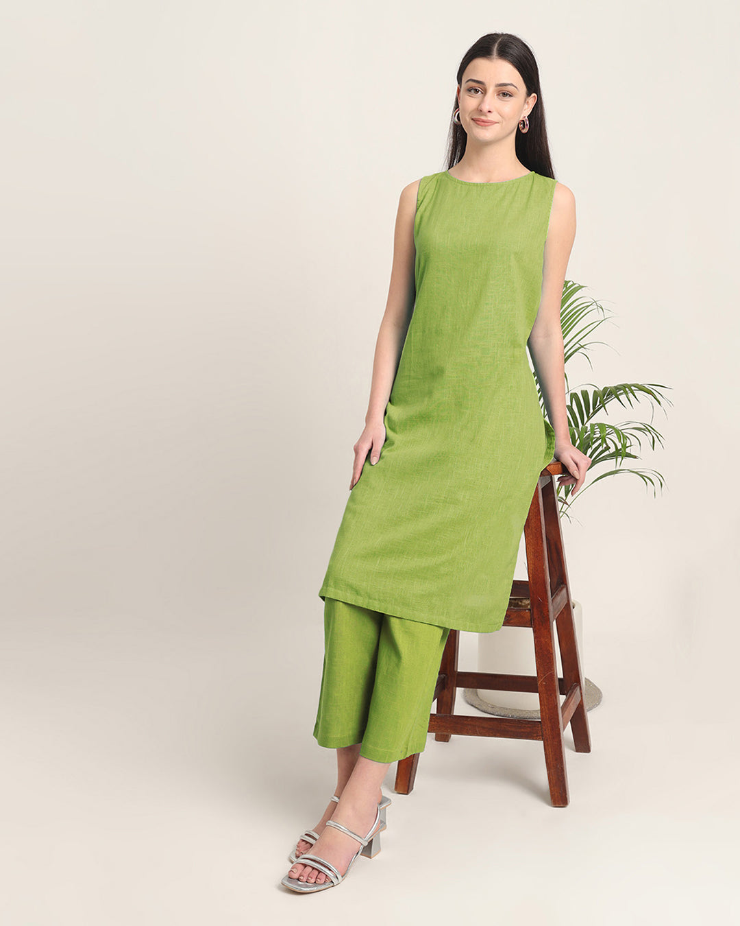 Sage Green Sleeveless Long Length Solid Co-ord Set