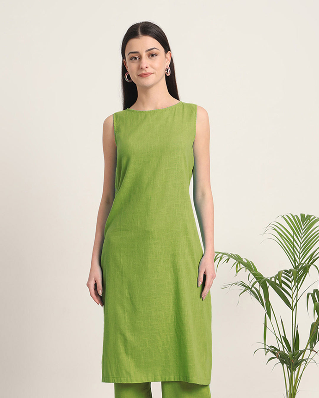 Sage Green Sleeveless Long Solid Kurta (Without Bottoms)