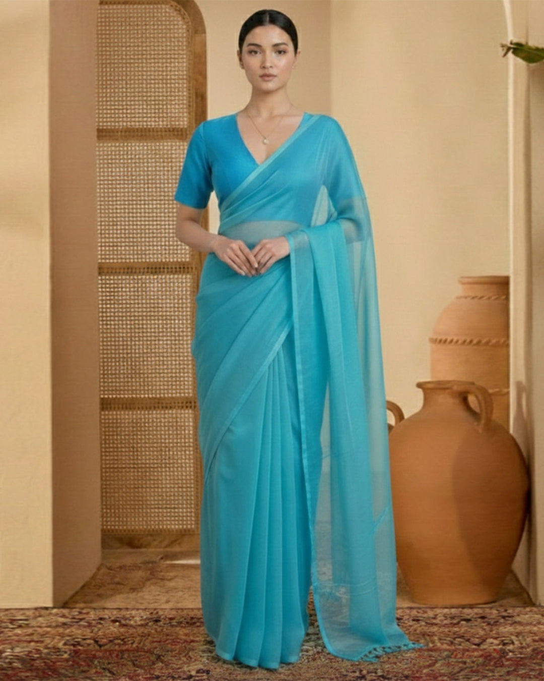 Silk Firozi Deep V Blouse