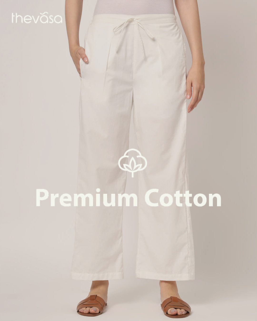 Upgrade your wardrobe with this classic presentation from Thevasa- crafted from high grade cotton and available in a host of shades. The white adds class and charm to these straight pants and they can go from Board meetings to house parties in minute